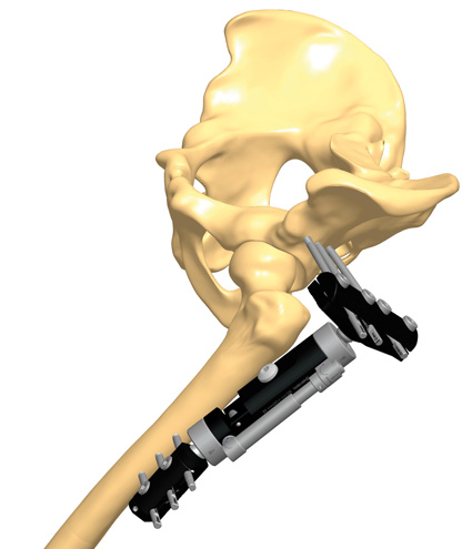 2B.5 Hip fusion using the ProCallus Fixator (90000 series) with Trauma Garches Clamp (or T-Clamp) for the pelvic screws.