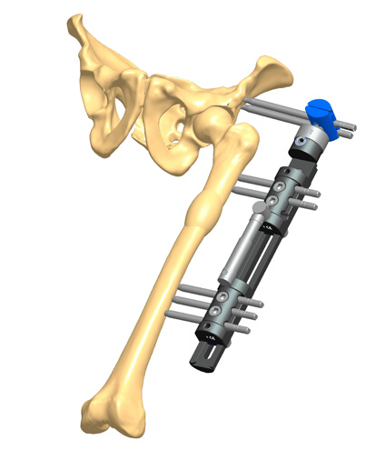 2B.8 Hip fusion and concomitant femoral shaft lengthening using the 55000 series in combination with the Small Blue DAF T-Clamp.